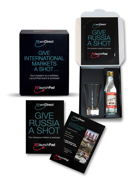 Box mailer to potential customers, free vodka always does the trick…